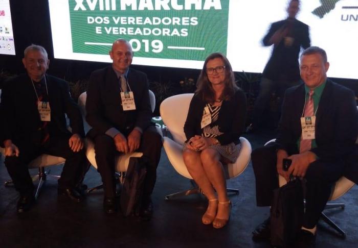 Os vereadores João Celso Führ (PDT), Jair Klein (Progressistas), Adriano Schneider (PSDB) e Anastacia Zart (PT) estiveram na última semana em Brasília participando da XIX Marcha dos Vereadores.