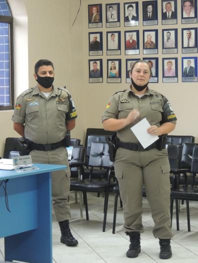 O tenente da Brigada Militar Juliano Bidinoto e a soldado cruzeirense, também instrutora desde 2008 do Programa, Elizandra Schenkartczuk, estiveram na sede do Poder Legislativo cruzeirense em 03 de novembro para apresentar o Proerd aos legisladores.