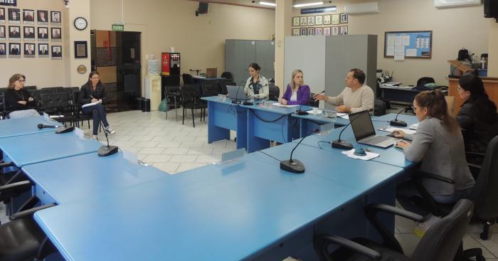 Estiveram reunidos, na manhã desta terça-feira (09/05), os vereadores Demétrios Lorenzini (PL) - autor do Projeto de Lei nº 018-02/2022, Marni Ledur (MDB) e a presidente Daiani Maria (MDB), juntamente com a secretária da Educação, Cultura e Esportes, Anelise Assmann, e a diretora da Escola Municipal de Ensino Fundamental Jacob Sehn, Leonice Diehl. A diretora geral da Câmara de Vereadores, Natália Wendt, e a assessora jurídica, Tamires Bottega, também participaram da reunião.