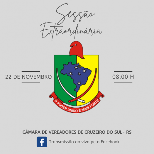 Nesta quarta-feira,22 de novembro, as 08:00h, o Poder Legislativo promoverá Sessão Extraordinária para debater os Projetos de Lei nº 240 e 241.