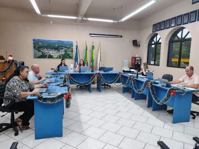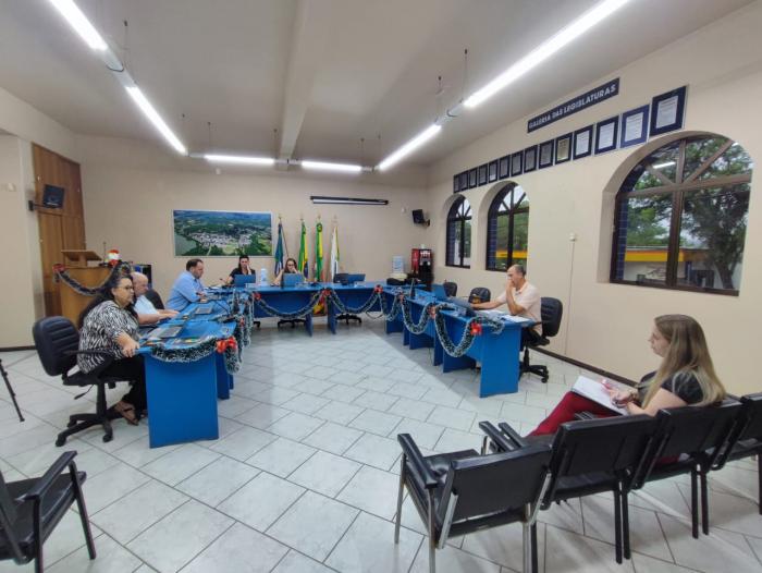 Nesta quarta-feira, 06 de dezembro, antes da Sessão Extraordinária ocorreu na Câmara Municipal de Vereadores, a reunião da Comissão de Constituição, Justiça e Redação Final- CCJRF. O encontro contou com a presença do Presidente da comissão Celso Batista dos Santos (PSDB), os vereadores Isidoro Weschenfelder (Progressistas), Maisa Siebenborn (PDT), Marni Ledur (MDB), a presidente da casa legislativa Daiani Maria (MDB) e a assessora jurídica Tamires Bottega.