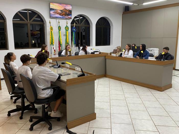 A sessão foi conduzida pela vereadora mirim 𝐒𝐨𝐟𝐢𝐚 𝐅𝐫𝐚𝐧𝐭𝐳, que abriu oficialmente os trabalhos legislativos do grupo. O destaque da noite foi a eleição da Mesa Diretora, com 𝐯𝐢𝐭𝐨́𝐫𝐢𝐚 𝐚𝐩𝐞𝐫𝐭𝐚𝐝𝐚 𝐩𝐨𝐫 𝟓 𝐯𝐨𝐭𝐨𝐬 𝐚 𝟒 da chapa formada por: