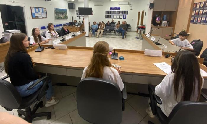 Na noite de ontem, na sede do Poder Legislativo, ocorreu mais uma sessão ordinária do Programa Câmara Mirim, que reúne jovens estudantes com o objetivo de incentivar a participação cidadã e o protagonismo juvenil.