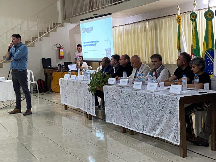 Na noite de ontem, a Câmara de Vereadores de Cruzeiro do Sul realizou a 𝐬𝐞𝐠𝐮𝐧𝐝𝐚 𝐚𝐮𝐝𝐢𝐞̂𝐧𝐜𝐢𝐚 𝐩𝐮́𝐛𝐥𝐢𝐜𝐚 para discutir o tema “𝐑𝐞𝐠𝐢𝐨𝐧𝐚𝐥𝐢𝐳𝐚𝐜̧𝐚̃𝐨 𝐝𝐨 𝐒𝐚𝐧𝐞𝐚𝐦𝐞𝐧𝐭𝐨”. O encontro aconteceu no Salão da Comunidade Católica, no centro da cidade, que ficou 𝐜𝐨𝐦𝐩𝐥𝐞𝐭𝐚𝐦𝐞𝐧𝐭𝐞 𝐥𝐨𝐭𝐚𝐝𝐨 por um grande público — em especial, 𝐫𝐞𝐩𝐫𝐞𝐬𝐞𝐧𝐭𝐚𝐧𝐭𝐞𝐬 𝐞 𝐚𝐬𝐬𝐨𝐜𝐢𝐚𝐝𝐨𝐬 𝐝𝐚𝐬 𝐚𝐬𝐬𝐨𝐜𝐢𝐚𝐜̧𝐨̃𝐞𝐬 𝐝𝐞 𝐚́𝐠𝐮𝐚 de diversas comunidades, que questionaram o contrato firmado na legislatura anterior.