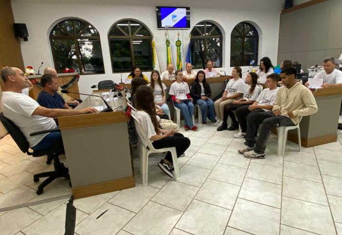 A solenidade teve início com a execução do Hino Municipal, seguida das manifestações do vice-prefeito, Carlos Spiekermann, e do presidente da Câmara, Júlio Scheeren, que destacaram a importância da iniciativa na formação cidadã dos jovens incentivando a participação política, a responsabilidade social e o protagonismo juvenil.